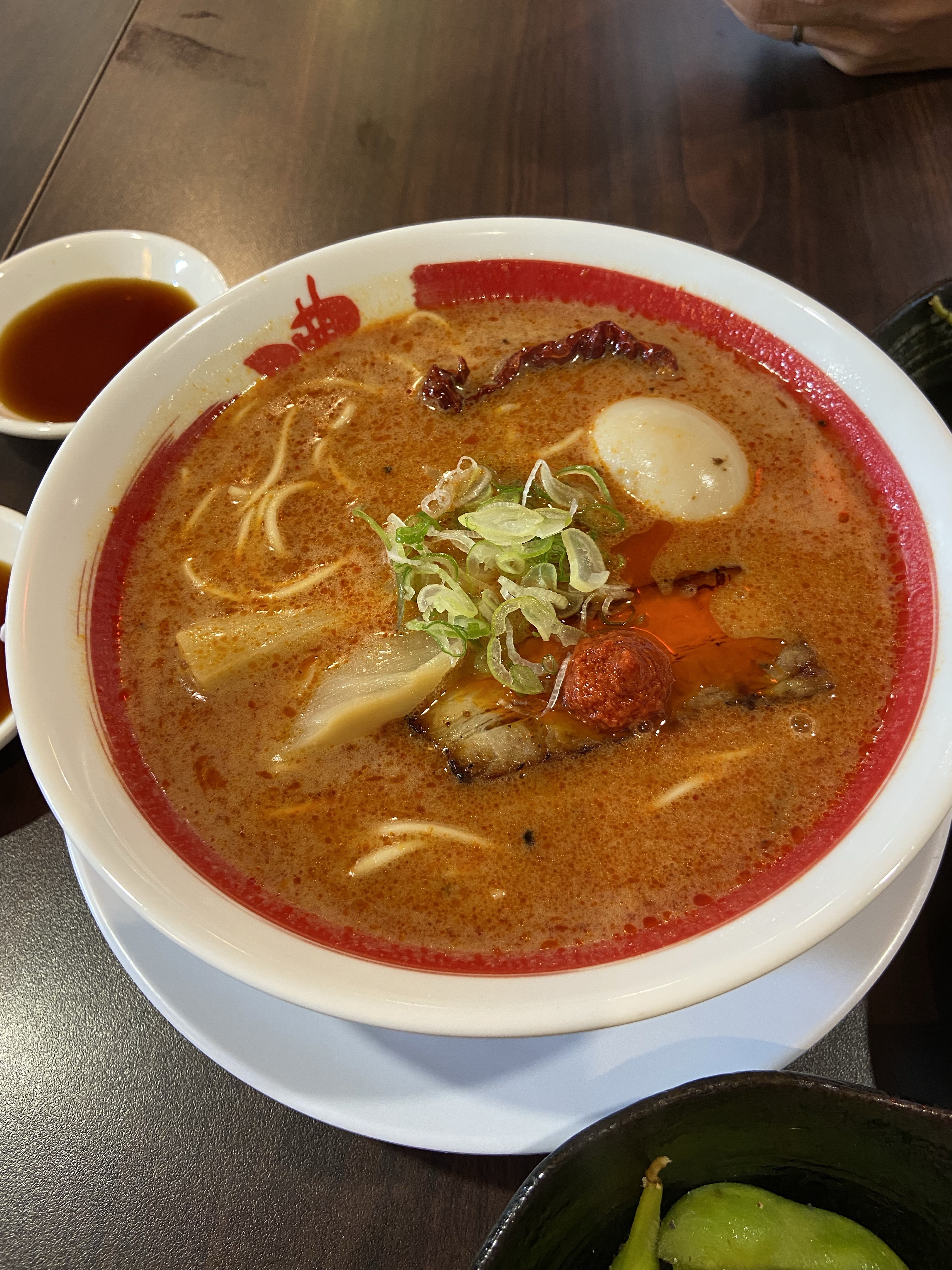 辛いのが大好きなシンガポール人の好みに合わせて、濃厚豚骨スープに溶け込んだ唐辛子が強烈アクセントとなり、病みつきになる。